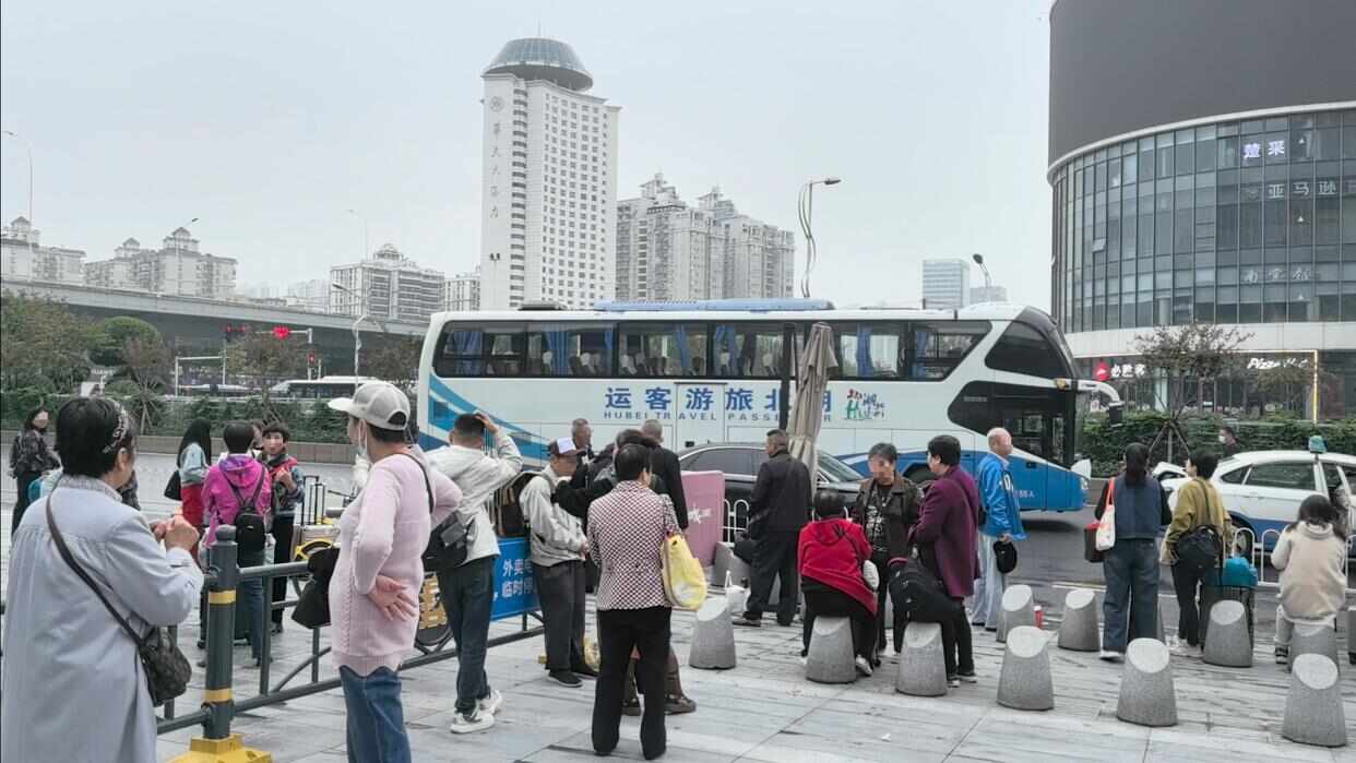 早上7点10分,记者来到武昌的指定集合地点,这里聚集了许多人。10分钟内,陆续来了3辆旅游大巴,前往婺源的车终于到了。