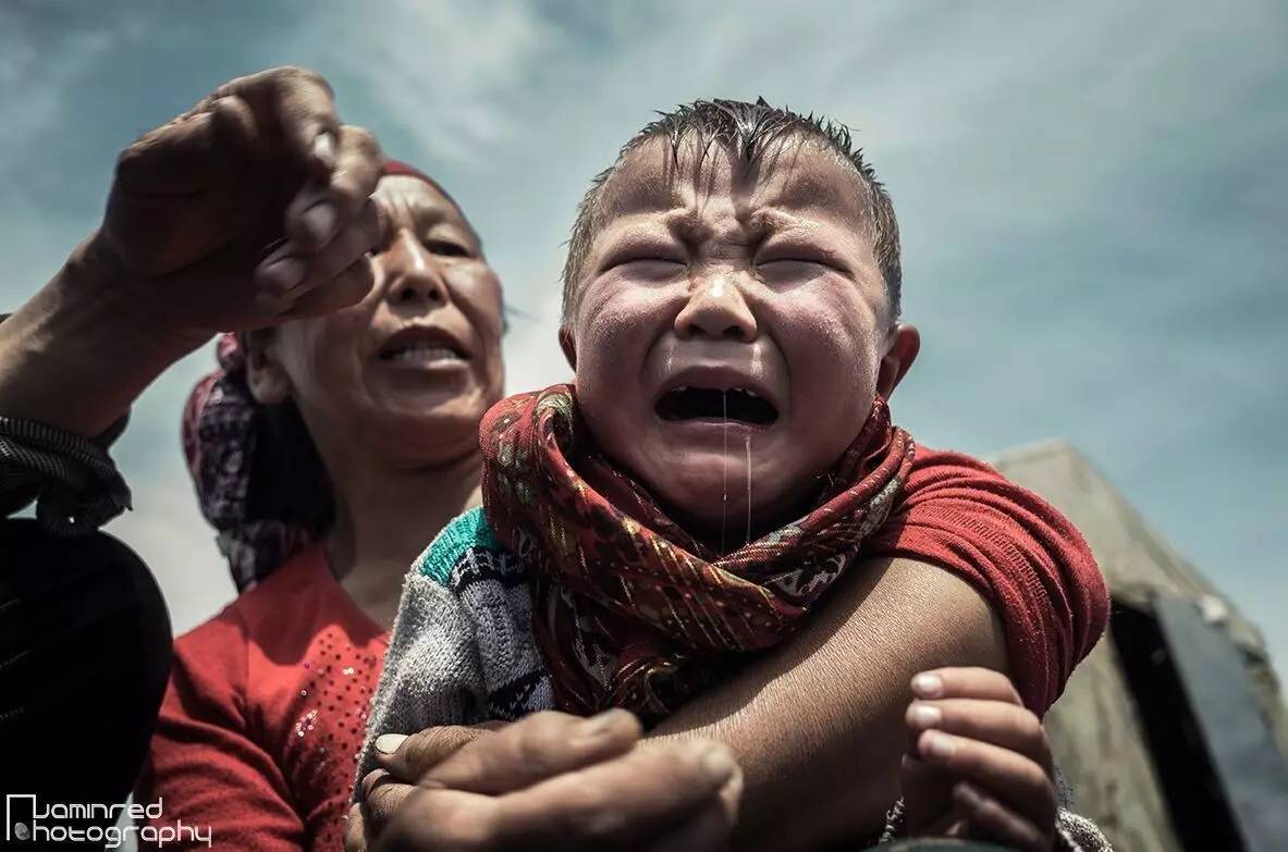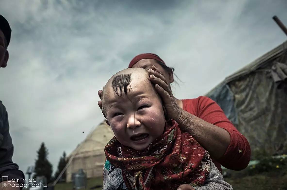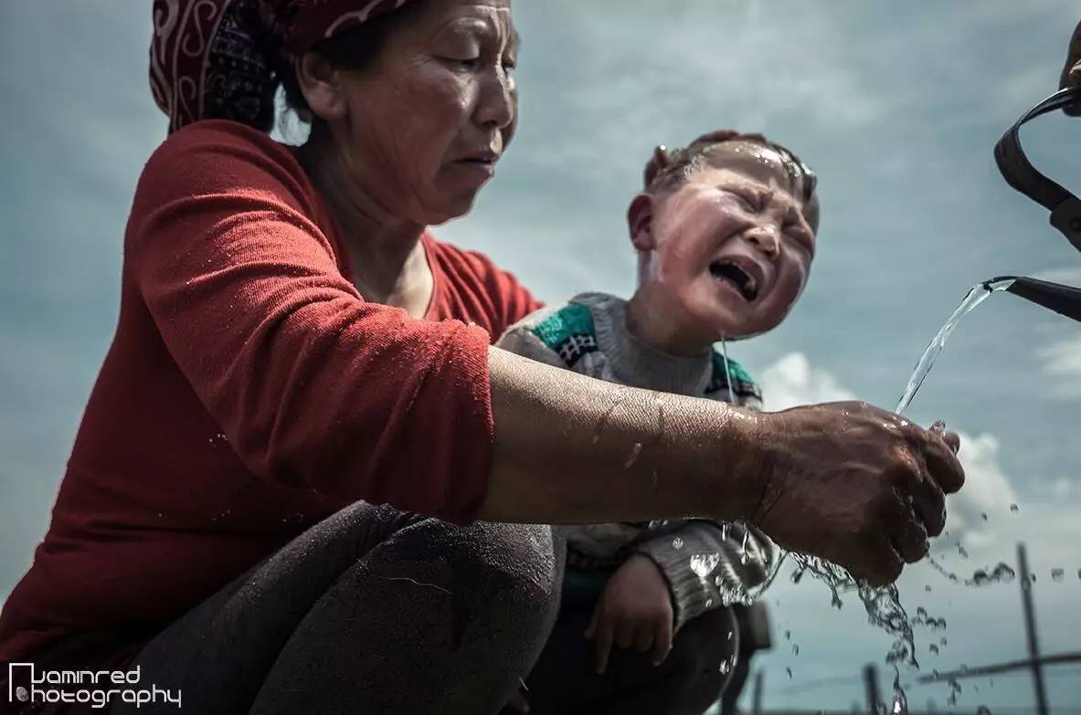 拍摄对象是一家生活在新疆喀拉峻草原上的哈萨克牧民,与其他还子家庭一样,图中的孩子是这对老两口的“小儿子”(孙子)。这是一天再正常不过的生活场景,并没有因我的到来而破坏什么。画面中的场景一开始以为是母亲要给小儿子洗头,而小儿子非常的不情愿的,拼命挣扎,放声大哭。