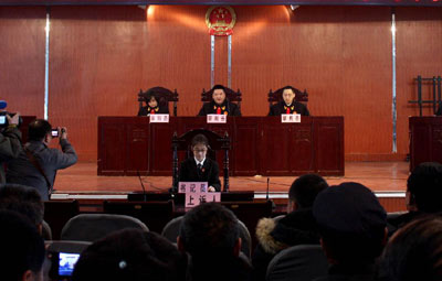 新野猴戏二审上诉案20日在河南省新野县人民法院公开宣判:撤销黑龙江省东京城林区基层法院判决,判决上诉人鲍风山、鲍庆山、苏国印、田军安无罪。2014年7月9日,河南省新野县鲍风山等4名猴戏艺人在黑龙江省牡丹江市街头表演猴戏,被该市森林公安局民警以没带野生动物运输证为由带走。9月23日,经东京城林区基层法院判决认定,4人犯非法运输珍贵野生动物罪。河南新野猴戏,其历史可以追溯到东汉。在明清时期,河南新野民间玩猴就已较为流行,并代代相传至今。2009年6月,作为一种地方民间文化,新野猴戏被评为河南省“非物质文化遗产保护项目”。图为1月20日拍摄的法庭现场。
