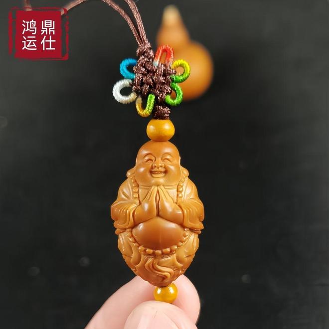 对于初入门的爱好者,建议从单粒挂件开始尝试。比如这款弥勒佛单籽,1.8的尺寸适中,既可佩戴也可随手把玩。弥勒开怀大笑的表情极具感染力,雕刻师通过寥寥数刀就表现出衣袂的飘逸感,可见功力之深。这类小品价格相对亲民,却能让人直观感受核雕艺术的魅力,是接触这门传统工艺的理想起点。