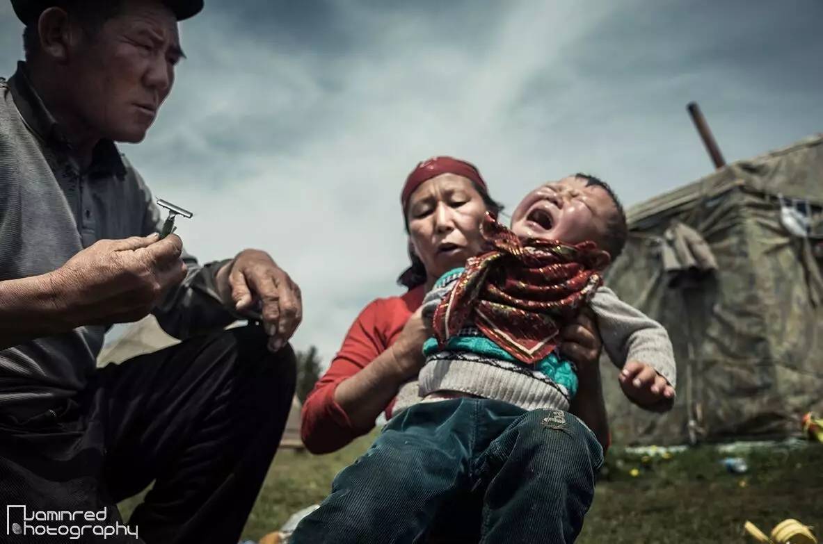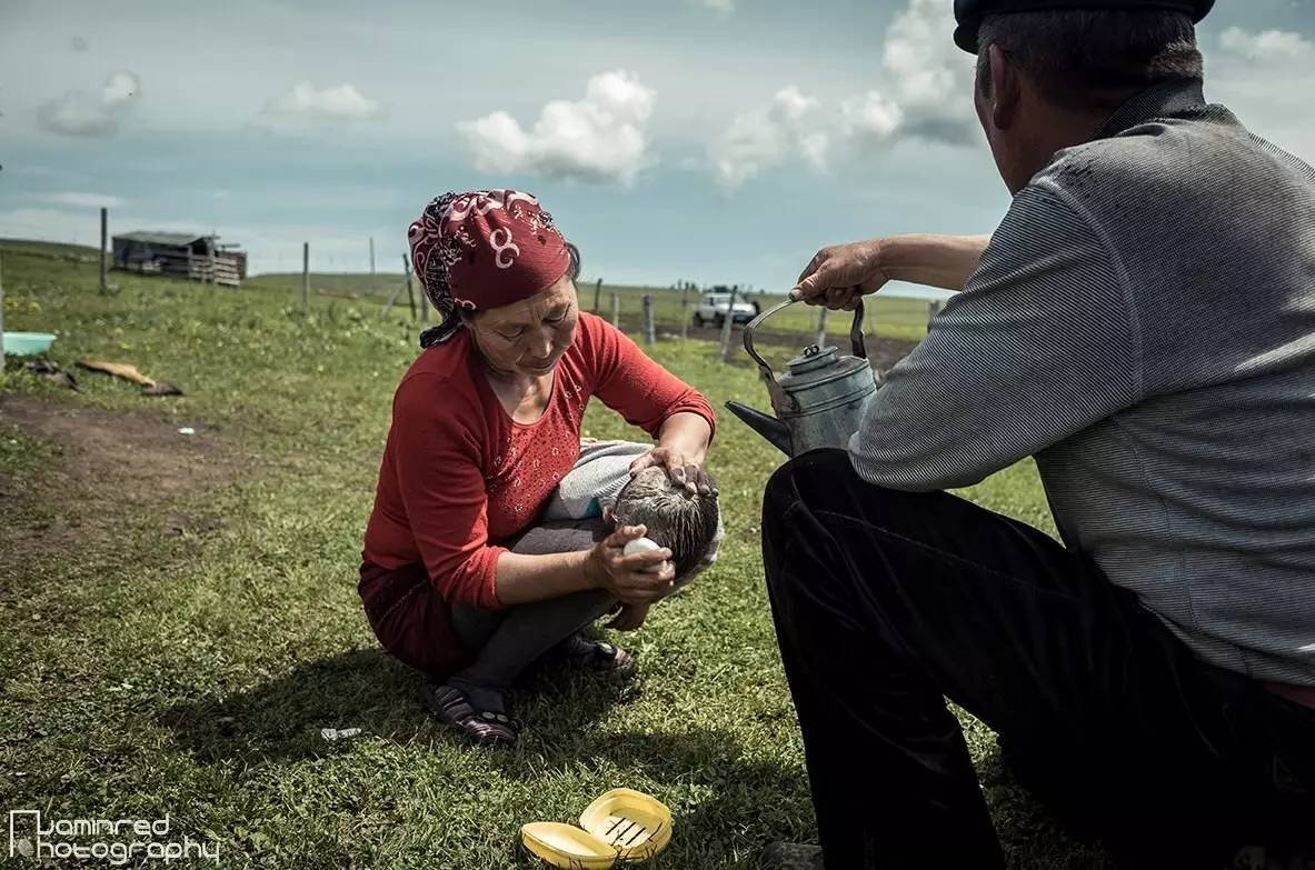 拍摄对象是一家生活在新疆喀拉峻草原上的哈萨克牧民,与其他还子家庭一样,图中的孩子是这对老两口的“小儿子”(孙子)。这是一天再正常不过的生活场景,并没有因我的到来而破坏什么。画面中的场景一开始以为是母亲要给小儿子洗头,而小儿子非常的不情愿的,拼命挣扎,放声大哭。
